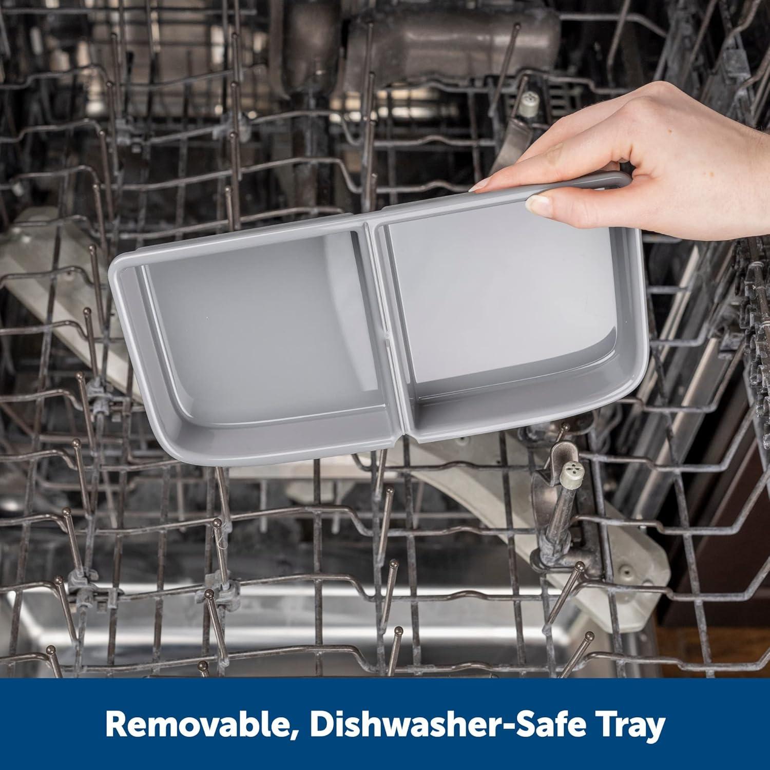 DISHWASHER SAFE: Place the removable BPA-free tray in the top rack of the dishwasher for easy cleanup