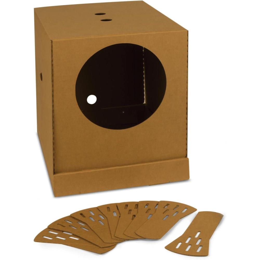 The PetSafe Disposable Litter Box is made of durable corrugated cardboard. The compact litter box easily pops up and folds back down for travel convenience. The box comes with a bag of crystal litter which absorbs urine and dries solid waste for 5x better odor control than clumping clay litters. The protective coating on the box protects against leaks while the box nests snuggly in the lid for extra protection. Whether youre moving or taking your pet on vacation, this litter box is a convenient potty solution for a pet on the move. PetSafe brand is here to help you and your pet live happy together.