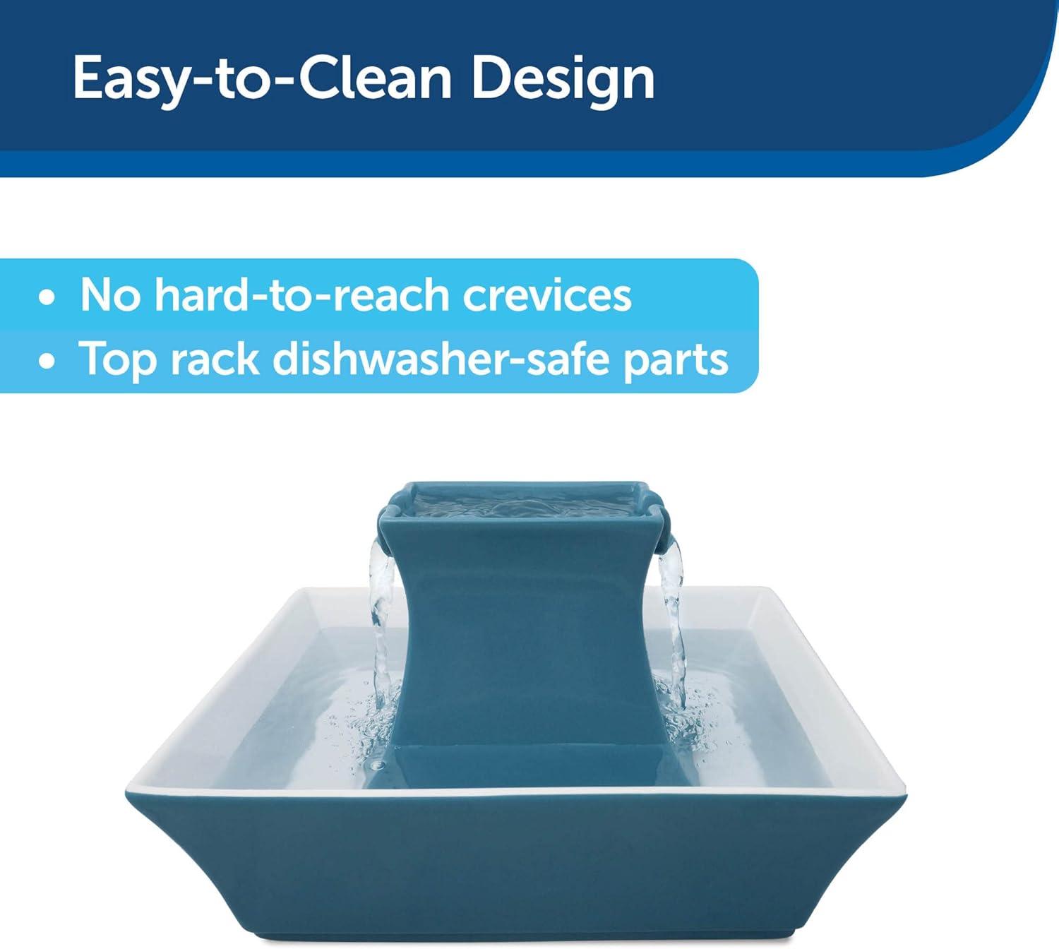 CLEAN AND HYGIENIC: Experience the ease of maintaining clean, fresh water with a ceramic water fountain. The constant water circulation help inhibit bacteria growth and promote good pet hygiene. The foam filter catches pet hair and debris, preventing the accumulation of potentially harmful substances. Fountain uses PetSafe Drinkwell Carbon Filter #6 (PAC00-13906), PetSafe Drinkwell Foam Filter #5 (PAC00-13711) and Drinkwell Replacement Pump (PAC00-13206).