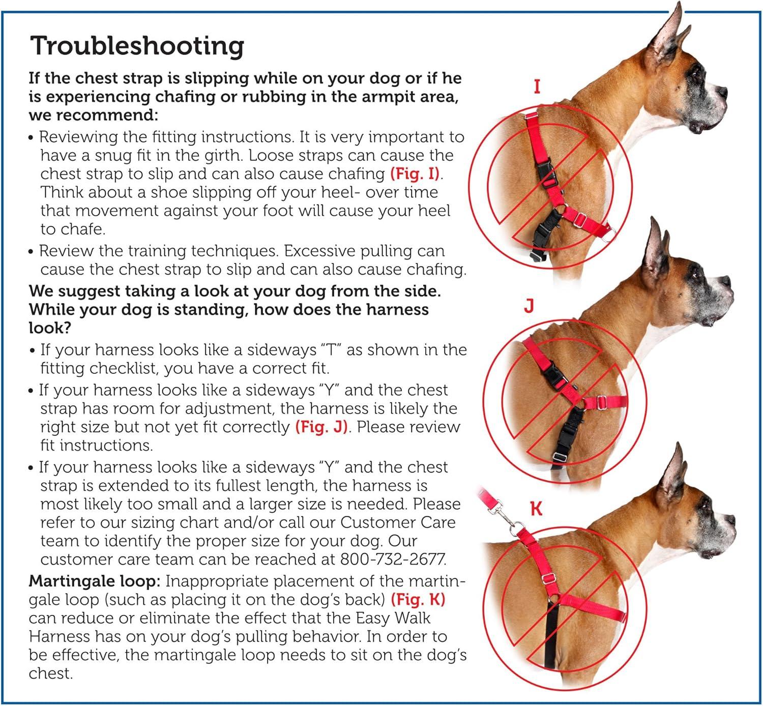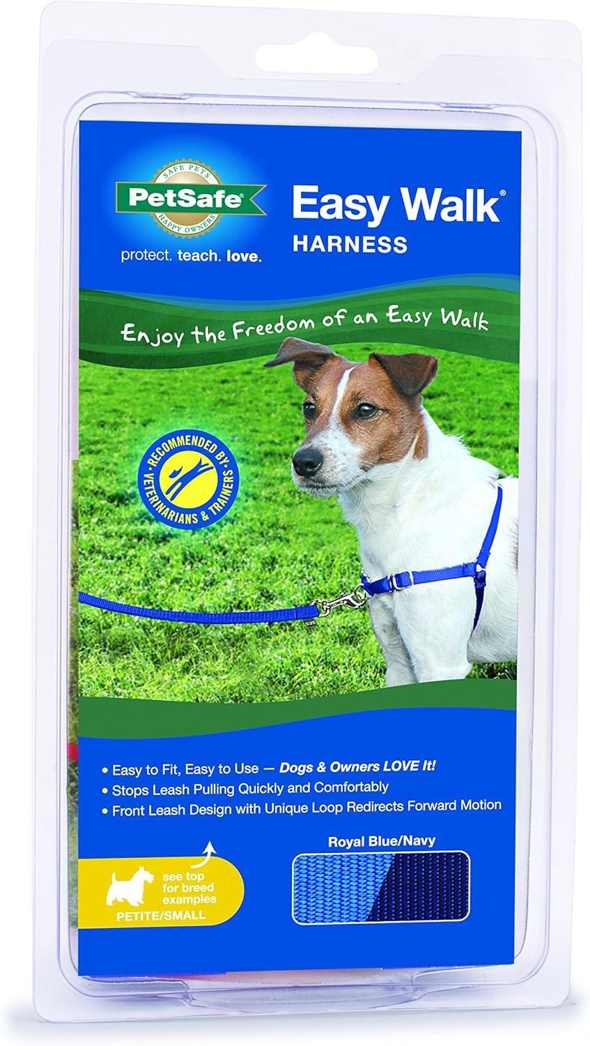 The Easy Walk Harness is a no-pull dog harness that helps stop pulling and teaches him better leash manners. The Easy Walk Harness has been loved and trusted by millions of pet parents and trainers since 2004 to help improve walks around the world. Since this harness rests across your dogs chest, you wont have to worry about it putting pressure on your dogs neck like when he wears a standard collar. The patented martingale loop on the front of the harness makes this harness great for dogs who pull. As your dog pulls or lunges, the specially designed loop tightens, putting gradual pressure on your dogs shoulders, allowing you to help redirect their focus. The leash attaches to the front of the harness so you can help gently guide your dog. Your dog will be cool and comfortable while wearing his harness. The Easy Walk Harness has less coverage than other harnesses making it lightweight and very breathable. The harness is also incredibly durable and ready for every walk or hike. The Easy Walk Harness is quick and easy to fit. Weve made the belly strap a different color from the rest of the harness, so youll be able to easily put on your dogs harness for your next walk together. You can purchase the Easy Walk Harness risk-free because whether the harness isnt the right size or your dog mistakes the harness for a chew toy, our Customer Care team is happy to assist you with a new size or replacement. You and your dog will soon enjoy pull-free walks together. Trust PetSafe to help keep your pet healthy, safe and happy.