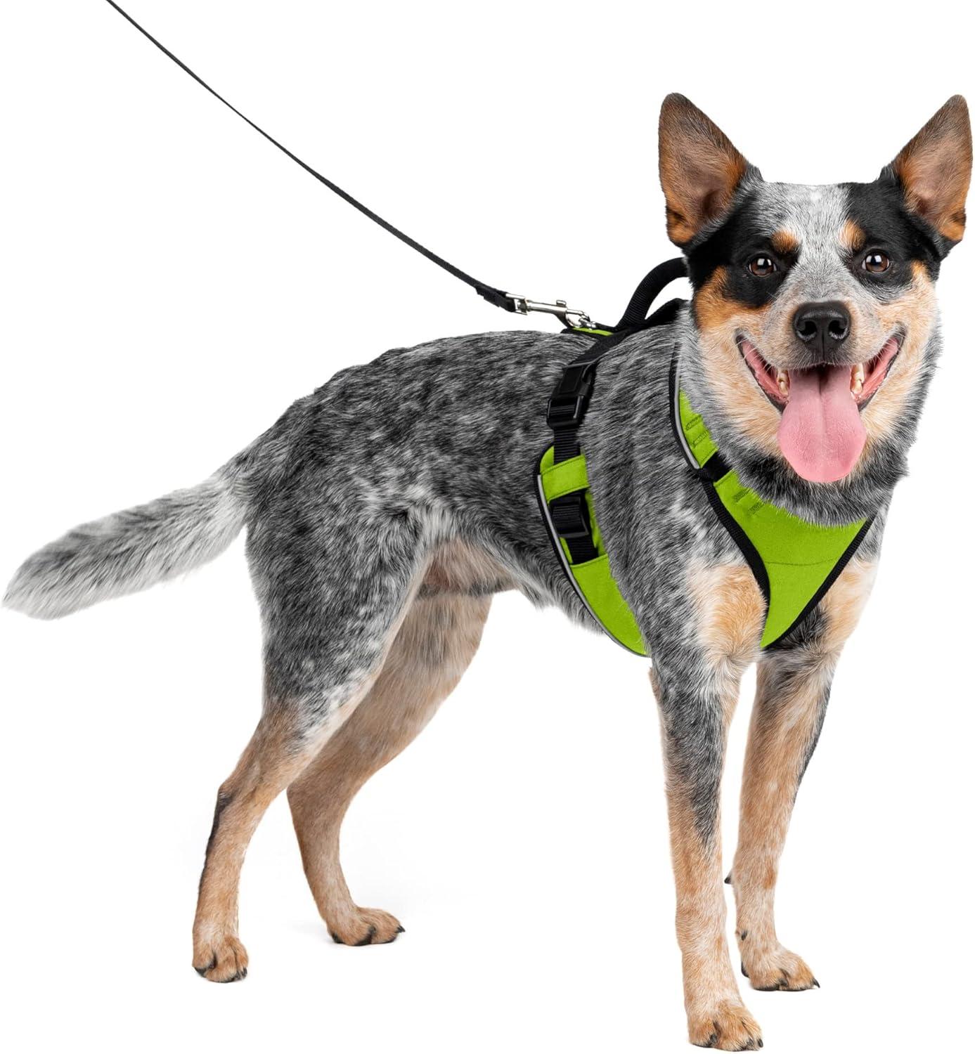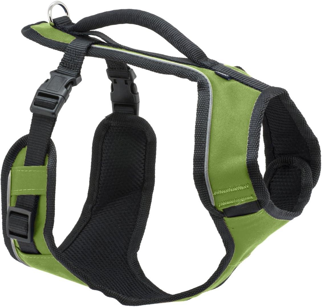 The EasySport Harness was designed with your active dog in mind, so he'll have a harness that can keep up with him on your next adventure together. This harness is made of durable padded fabric to withstand each day hike or jog around the neighborhood. The EasySport Harness is padded throughout to help keep your dog comfortable all day long. The elastic neckline easily slides over your dog's head when you take the harness on and off, flexing around his neck as he moves for an extra-comfy fit. This harness also has a rear-leash attachment point so your dog won't trip on his leash when he's on the go. This harness is fully adjustable for dogs of all shapes and sizes. It has 2 buckles, making it quick and easy to get on and off, so your dog can go from jumping in the lake to sunning on the dock that much faster. This dog harness with a handle gives you an extra degree of safety when you need to control your dog quickly or guide him in the right direction. The handle also lets you help your dog if you need to give his short little legs a boost while on a hike together. And for evening walks around the neighborhood, the reflective piping on the harness helps cars see you for added safety. Your pet deserves the best. Trust PetSafe to help keep your pet healthy, safe and happy.