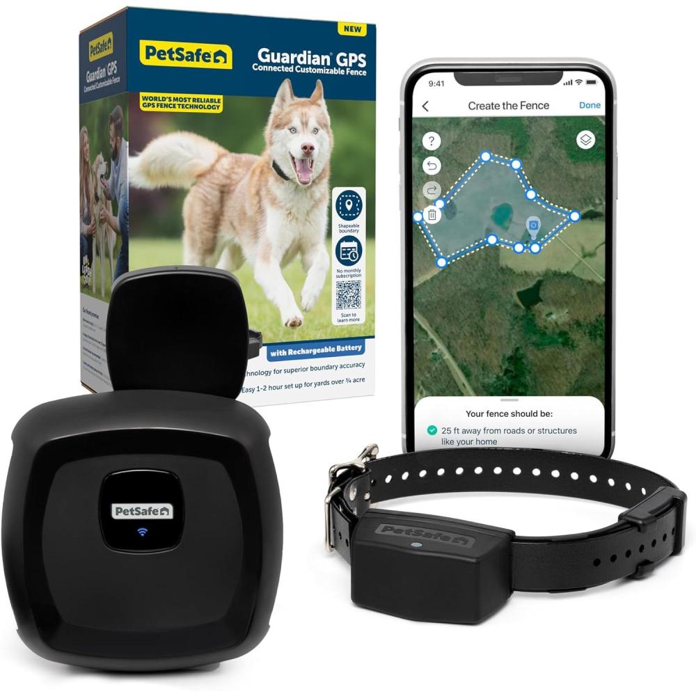 PetSafe Guardian GPS Connected Customizable Fence - Subscription-Free GPS Dog Fence for Large Yards, Create Your Own Boundary for up to 8 Dogs, 10 Static Levels, Long Battery Life & Smartphone Syncing(Guardian GPS Connected Fence Kit)