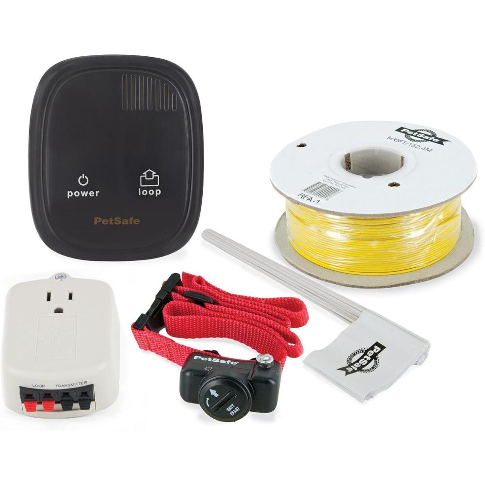 PetSafe's In-Ground fence pet containment systems provide your pet with freedom and safety while costing thousands less than conventional fencing. It's quick and easy to install, reliable and safe, and with proper training, a very effective solution. A lightweight receiver is worn on your pet's collar, which picks up the signal and alerts your pet as he nears the underground boundary. Once your pet is properly trained, he will learn to stay in the boundaries designated by the radio fence. Includes 500 feet of boundary wire and 50 boundary flaps, enough to cover about one-third acre. For use in the US only. This unit is compatible with all US 110v outlets and are not to be used with 220v international voltage.