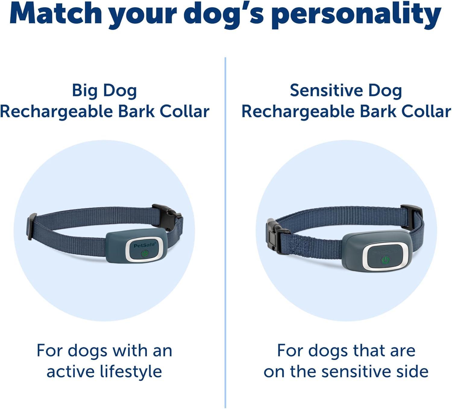 The Rechargeable Bark Collar allows you to train your dog without the hassle of stocking up on batteries. The built-in temperament learning of this collar adapts to how frequently your furry friend barks. For example, when your dog barks, he will receive the lowest level of correction from the collar. If he continues barking, the correction level will increase, but if he remains quiet, the levels of correction will automatically reduce. Your dog will never be corrected because of another dogs bark or a loud outside noise because the dual detection technology in this collar must sense both vibration and sound before correcting. Because the correction is immediate and consistent, your dog will learn to associate his barking with a correction and change his behavior within as little as 2 weeks. Thats a win for you, your dog and your neighbors! Your pet deserves the best. Trust PetSafe to help keep your pet healthy, safe and happy.