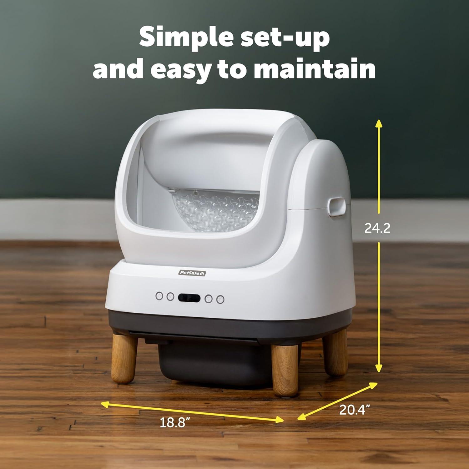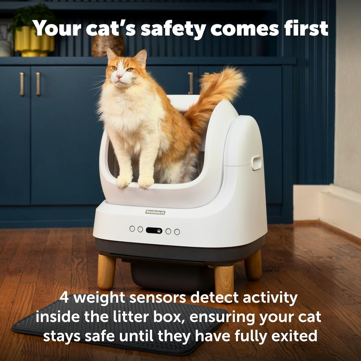 Simplify your busy life with the PetSafe ScoopFree OpenSky Self-Cleaning Litter Box, the open-top automatic litter box designed for on-the-go cat owners. Perfect for all-sized cats, including large cats up to 33 lbs, the open-top design ensures a safe and comfortable experience for your pet. The sealed waste drawer has 4x better odor control than a traditional litter pan, keeping your space fresh and inviting. Quiet and reliable with a sleek, modern aesthetic, the ScoopFree OpenSky Self-Cleaning Litter Box is the ultimate upgrade for cat parents who value convenience, style and cutting-edge solutions. Live your best life while giving your cat the freedom they deservescoop-free, stress-free and hassle-free. Get real time updates about your cats well-being with the integrated health monitoring app that helps you track weight and litter box usage. The app is not a medical device and should not be substituted for professional medical judgement. Please consult your veterinarian before making decisions related to your cats health.