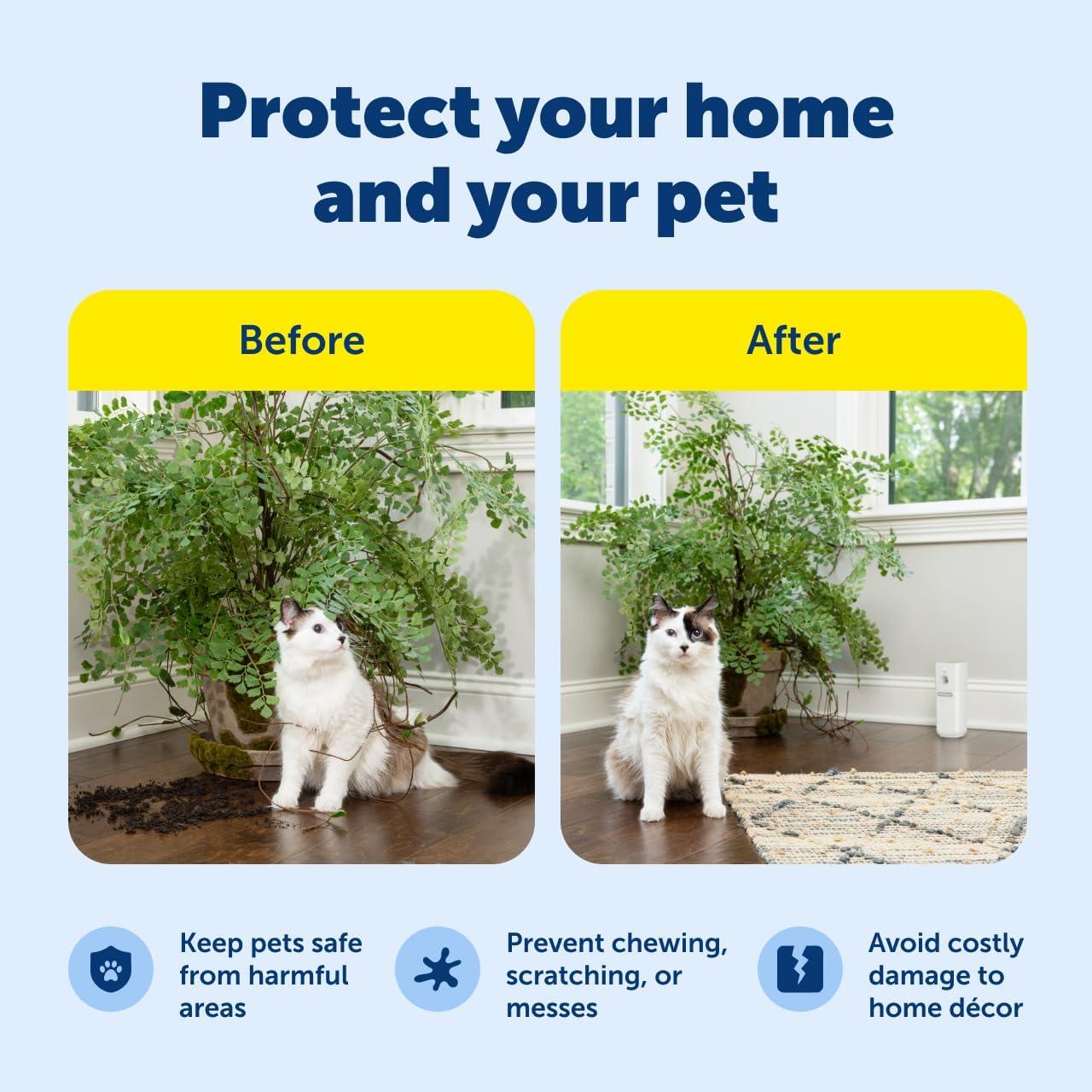 Motion Sensor Spray Deterrent: This indoor pet deterrent is designed to protect furniture, countertops, plants, garbage cans and more, discouraging your dog or cat from chewing, scratching, eating or peeing in “off limits” areas