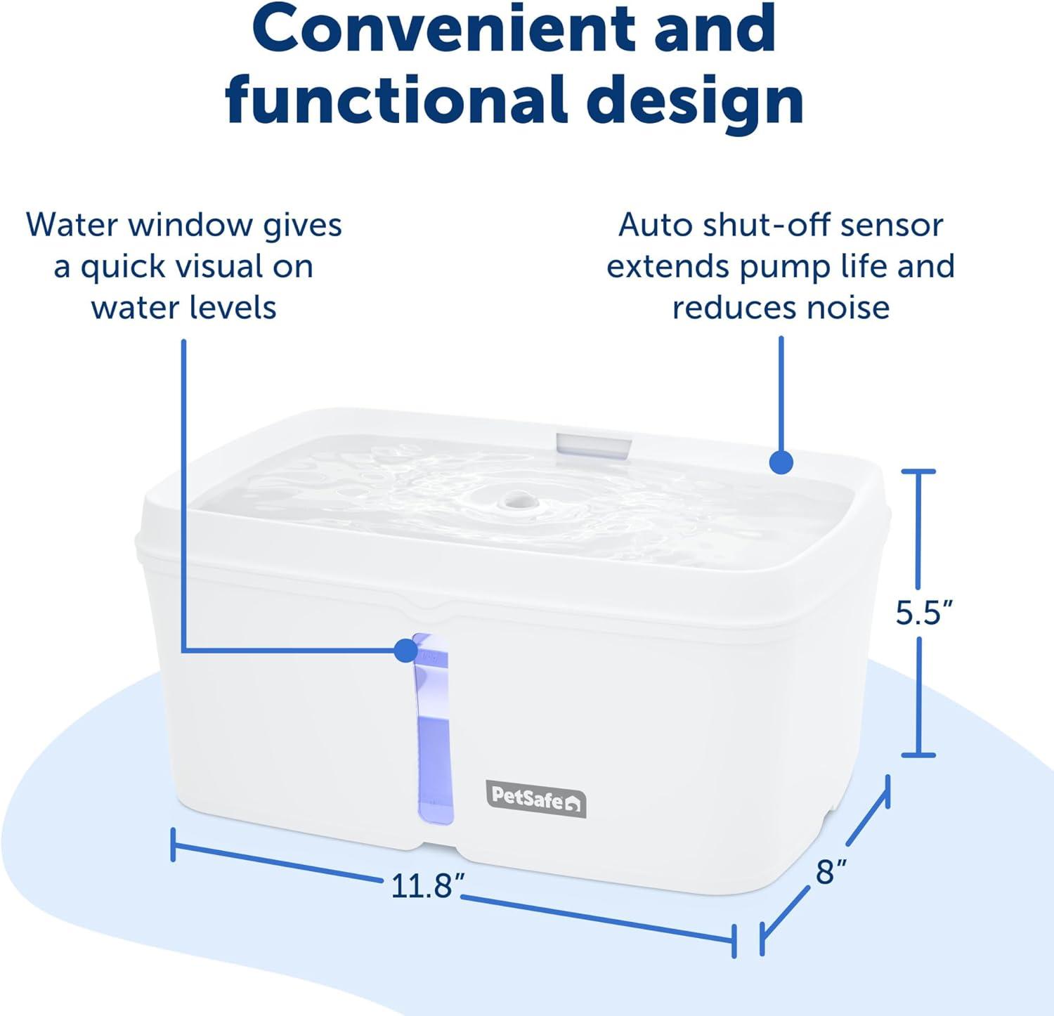 The Viva Pet Fountain is a game-changer for your dog's hydration. This fountain for dogs keeps the water fresh and flowing, making them want to drink more throughout the day. The water is clean and tasty, thanks to the dual filtering that eliminates impurities and enhances flavor. Traditional water bowls can't compete with this kind of service. It's not just a treat for your dog – pet parents can ditch the daily hassle of filling and cleaning their pet's water bowl! Give your dog a fountain theyll fall in love with at first sip with the 140 oz Viva Pet Fountain.
