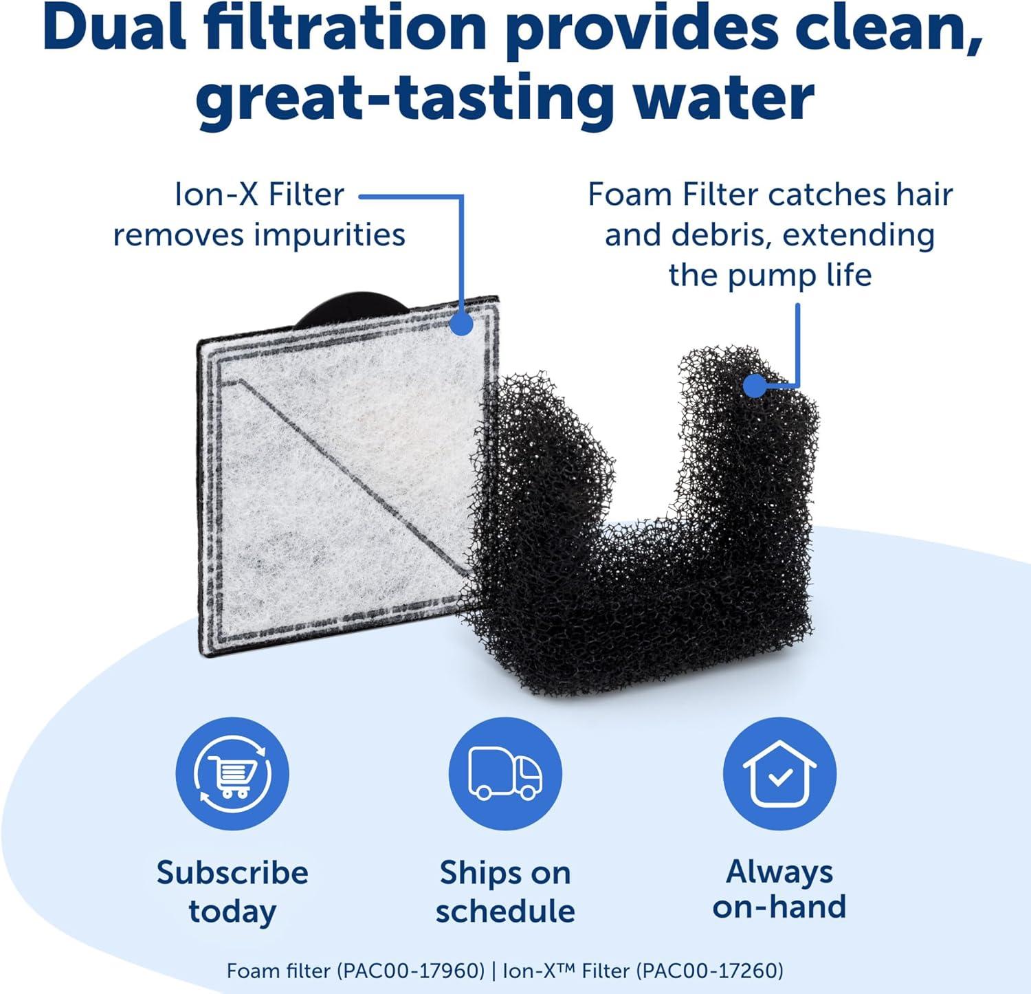 DOUBLE FILTRATION: The foam and Ion-X filters catch debris and filter out bad tastes, ensuring your pet’s drinking water stays clean and tasting great