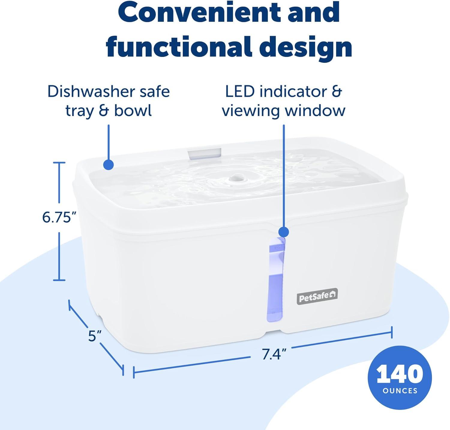 140 OZ WATER CAPACITY: This dog fountain provides fresh water around the clock, promoting a healthy and hydrated life for pups of all sizes