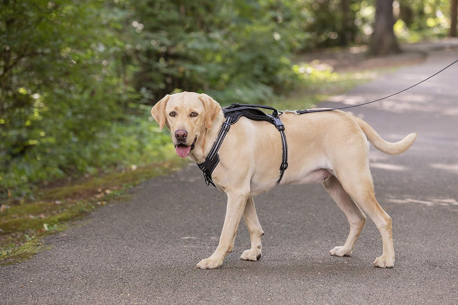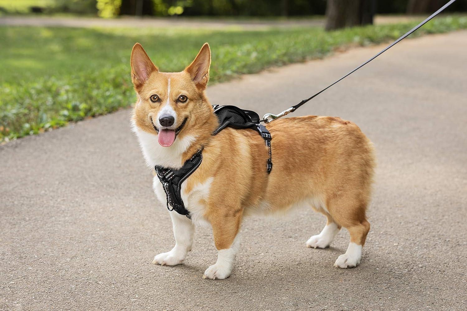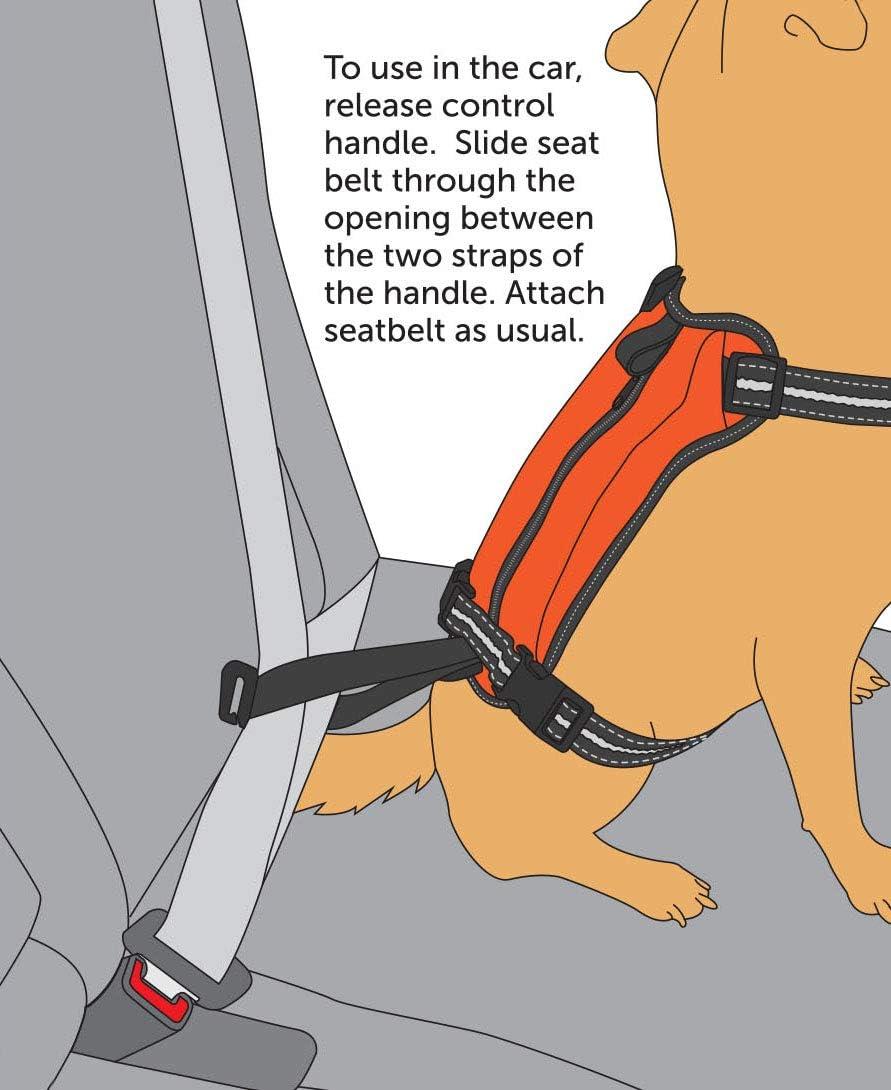 TRAVEL SAFETY: The handle on top of the harness works as a seat belt tether to keep your pup safe during road trips in your vehicle