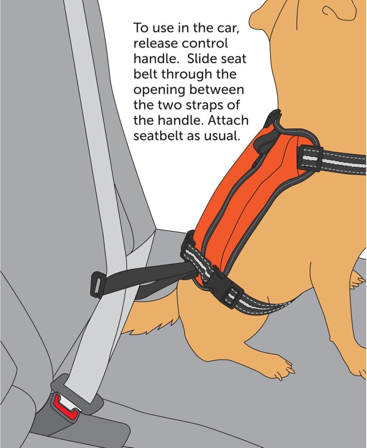 TRAVEL SAFETY: The handle on top of the harness works as a seat belt tether to keep your pup safe during road trips in your vehicle
